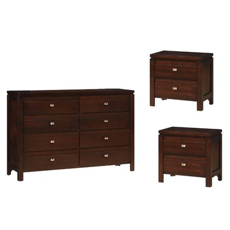 3 Piece Bedroom Set With Dresser And Set Of 2 Night Stands In
