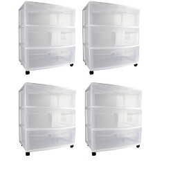 Sterilite 3 Drawer Wide Wheeled Plastic Storage Container Clear