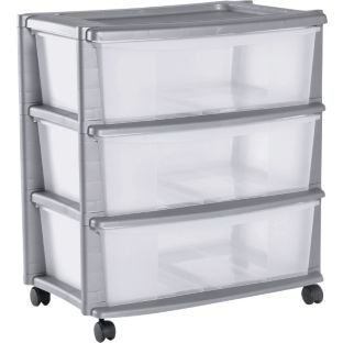 3 Drawer Plastic Wide Tower Storage Unit Silver Storage Units