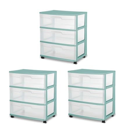 Home Organization Sterilite 3 Drawer Wide Cart Storage Plastic