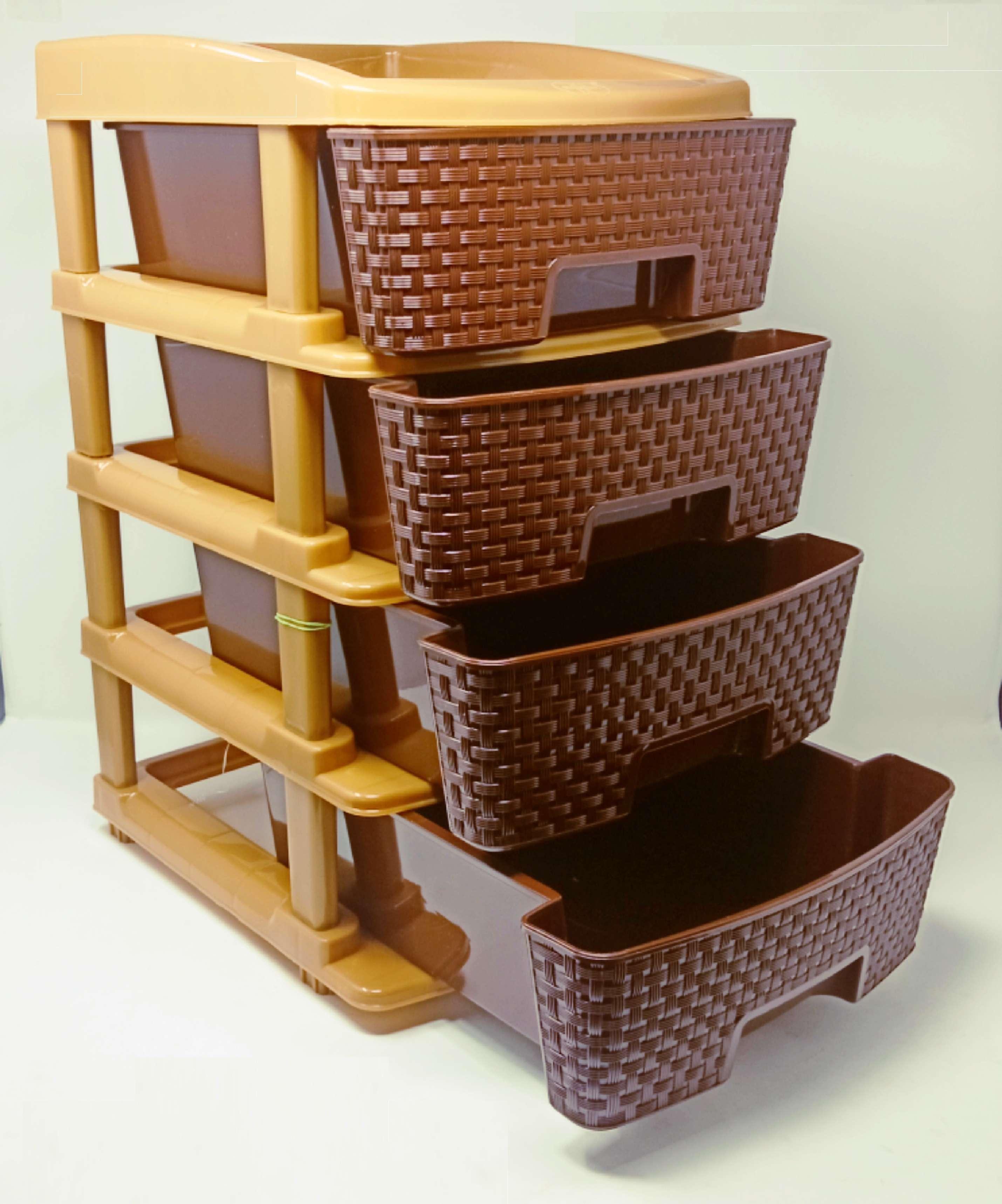 3 4 Tier Rattan Plastic Storage Drawer Organiser School Office
