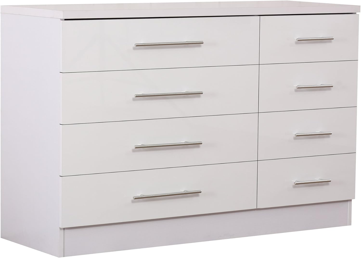 White Gloss Large 8 Drawer Chest White Gloss Bedroom Furniture