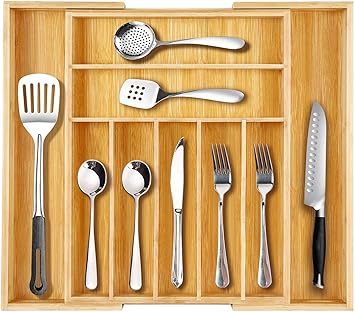 Kitchen Best Utensil Drawer Organizer Silverware Expendable Bamboo