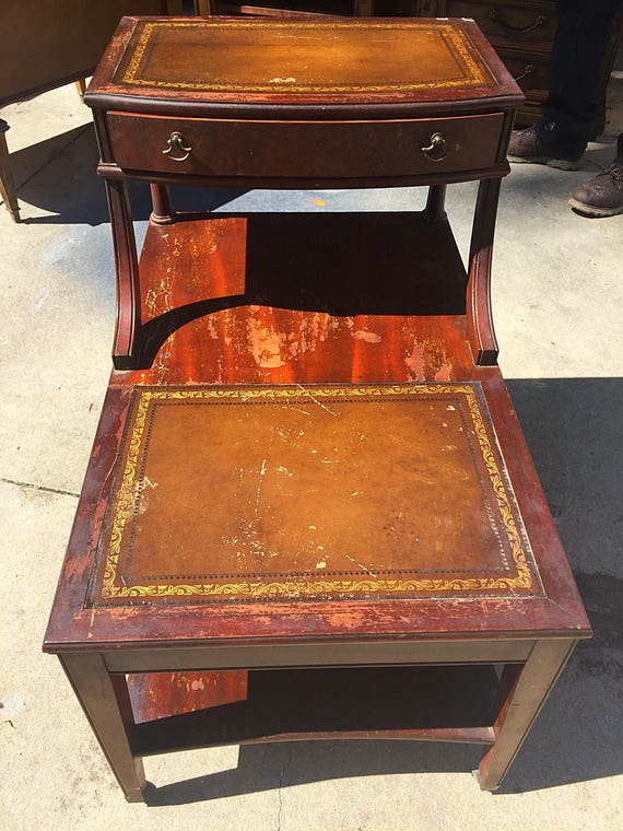 Imperial Grand Rapids Vintage Side Tables On Casters With Leather