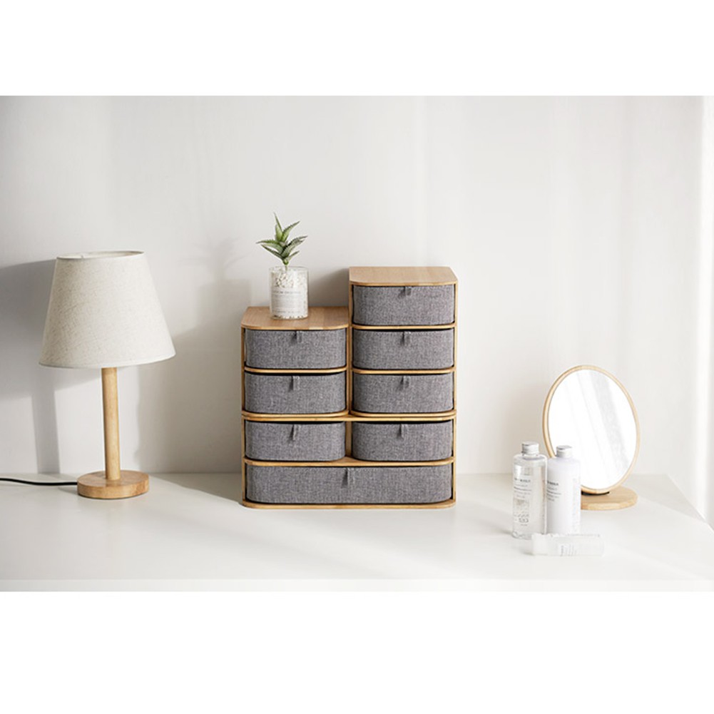 Multi Layer Storage Drawer Bamboo Oxford Cloth Desktop Storage Box