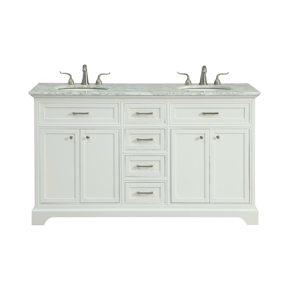 White Shaker 72 Bathroom Vanity 2 Sinks 6 Drawers With Marble Top