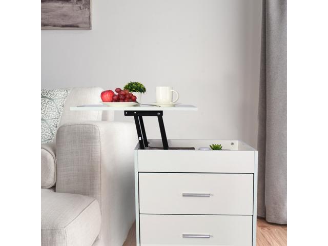 Wood White Sofa End Side Bedside Table Nightstand W Drawer Storage