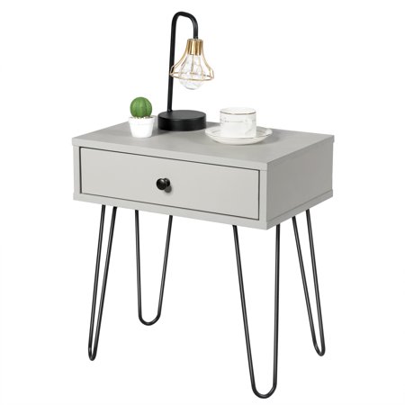 Costway 1 Drawer Black End Bedside Table Nightstand Drawer Storage