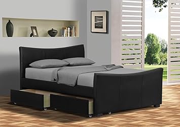 Double Bed Black Faux Leather Sleigh Bed With Under Bed Storage