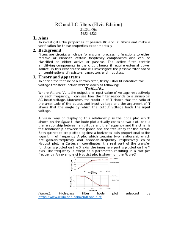 Lab 4 Frequency And Phase Response Of A Series Rc Circuit