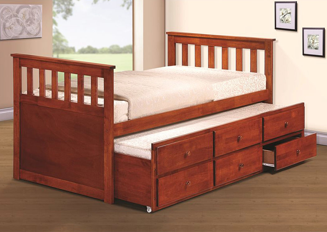 Twin Captain Bed W Trundle Drawers Cherry Pacific Imports Inc