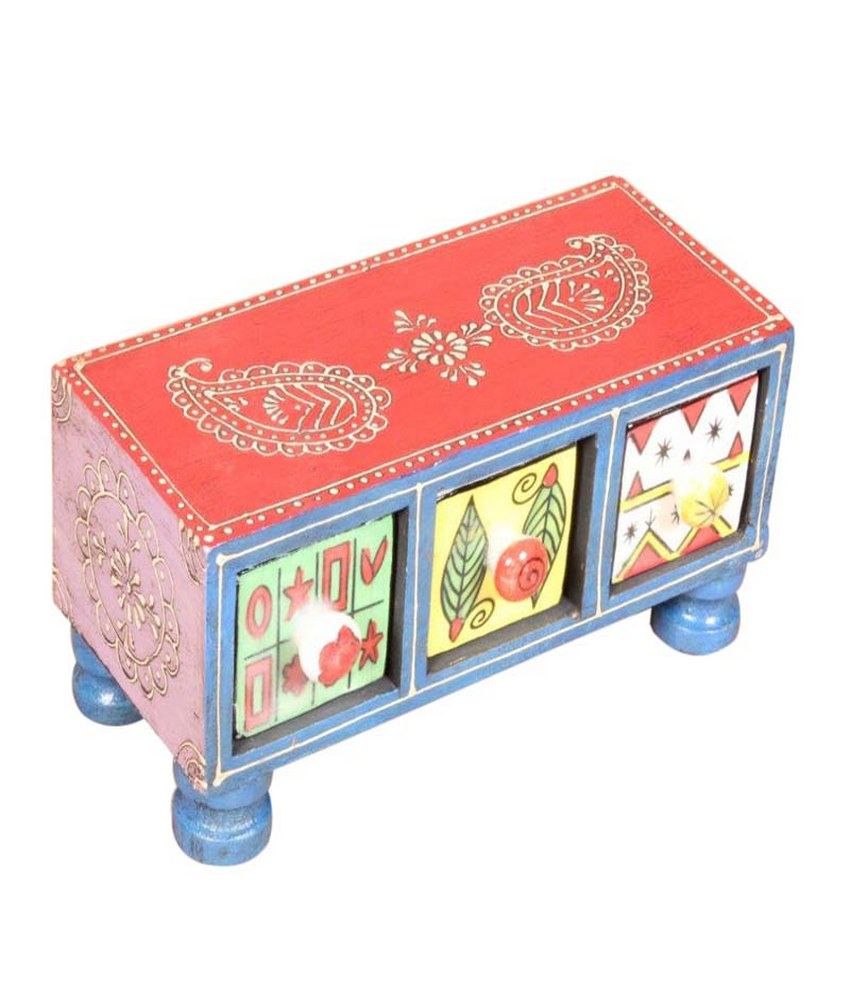 Buy Home And Bazaar 3 Drawer Wooden Chest With Ceramic Drawers