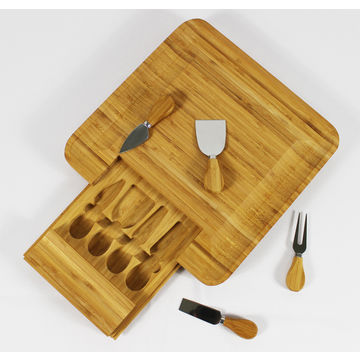 Csm072 Bamboo Cheese Board With Cutlery Knife Set And Slide Out
