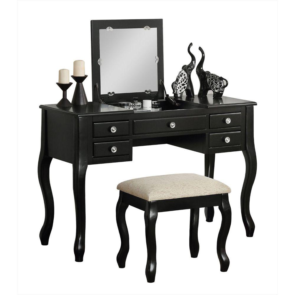Linon Home Decor Garbo 2 Piece Wooden Black Vanity Set Thd02025