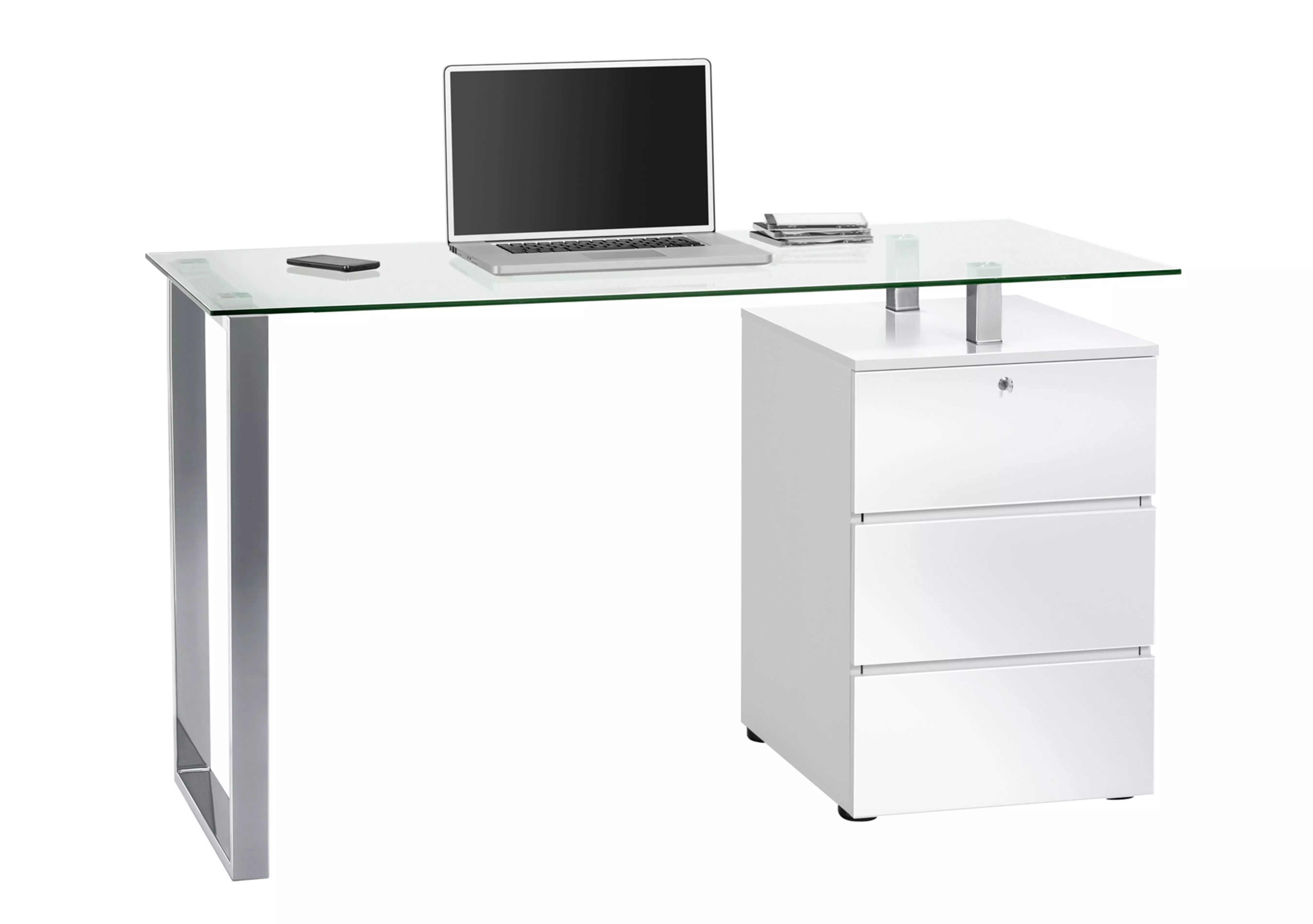 60 L White Computer Desk With Silver Metal Drawers On One Side