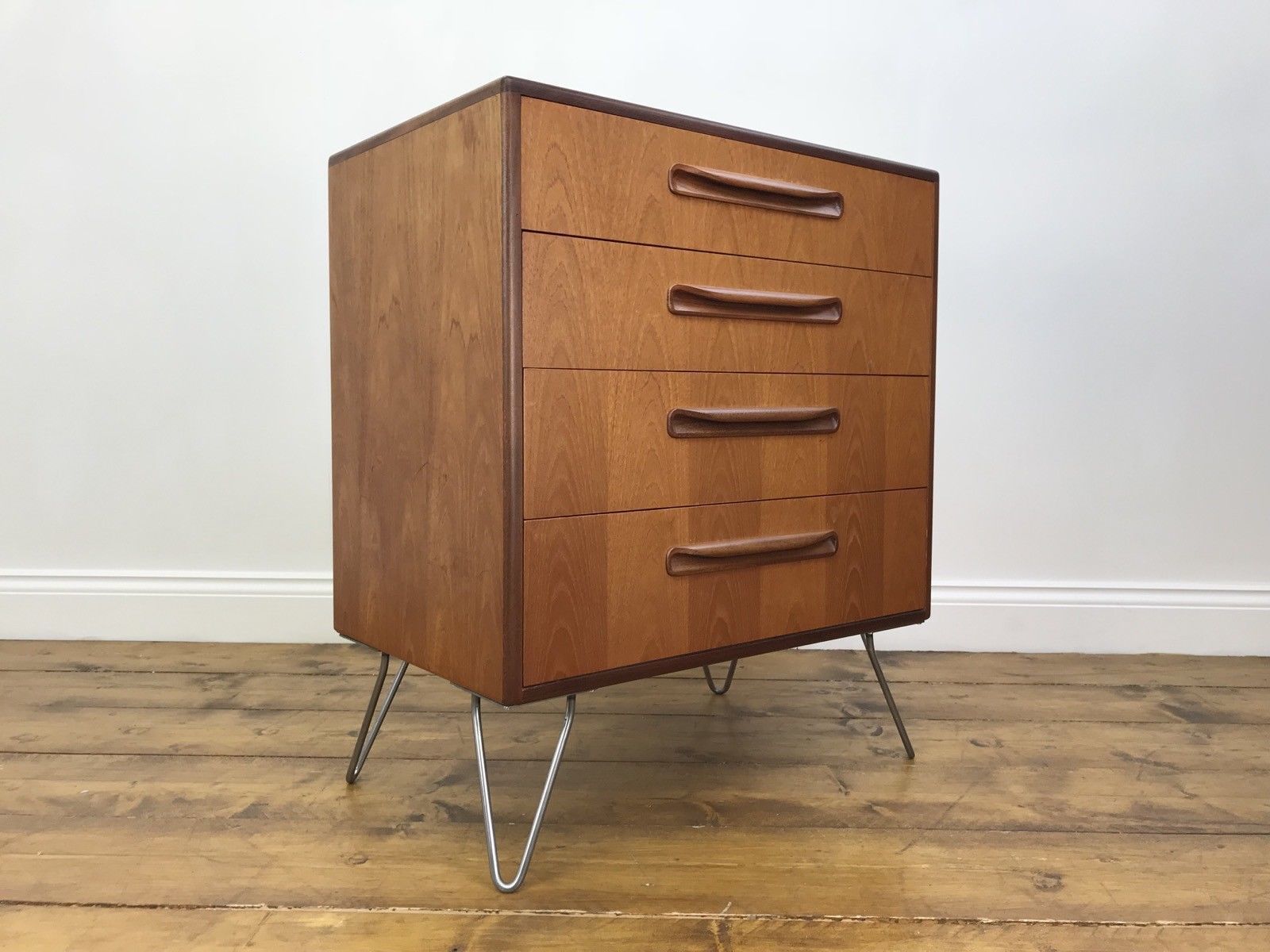 Retro G Plan Teak Chest Of Drawers On Mid Century Hairpin Legs