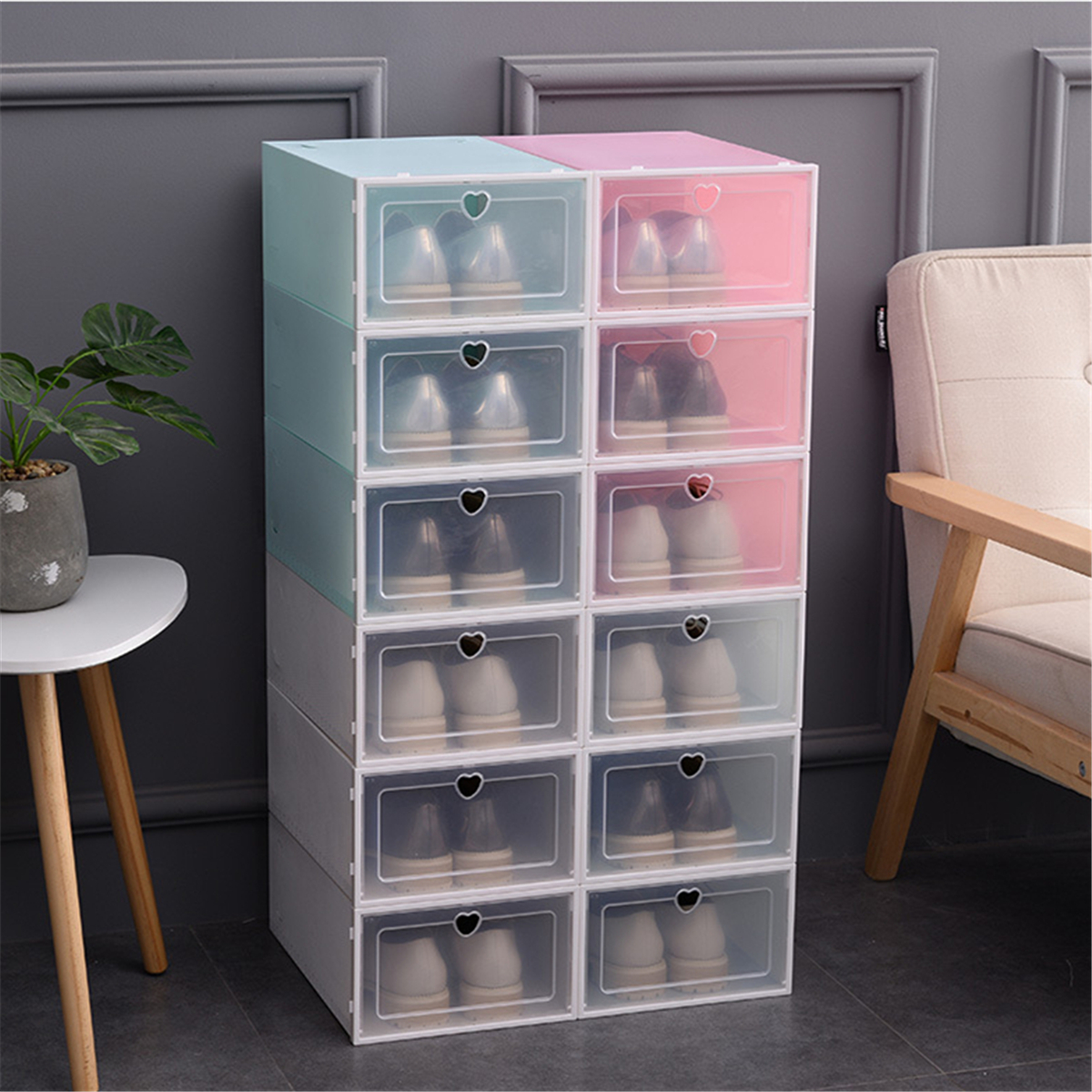 Heart Shape Foldable Plastic Shoes Box Stackable Storage Shoe Box