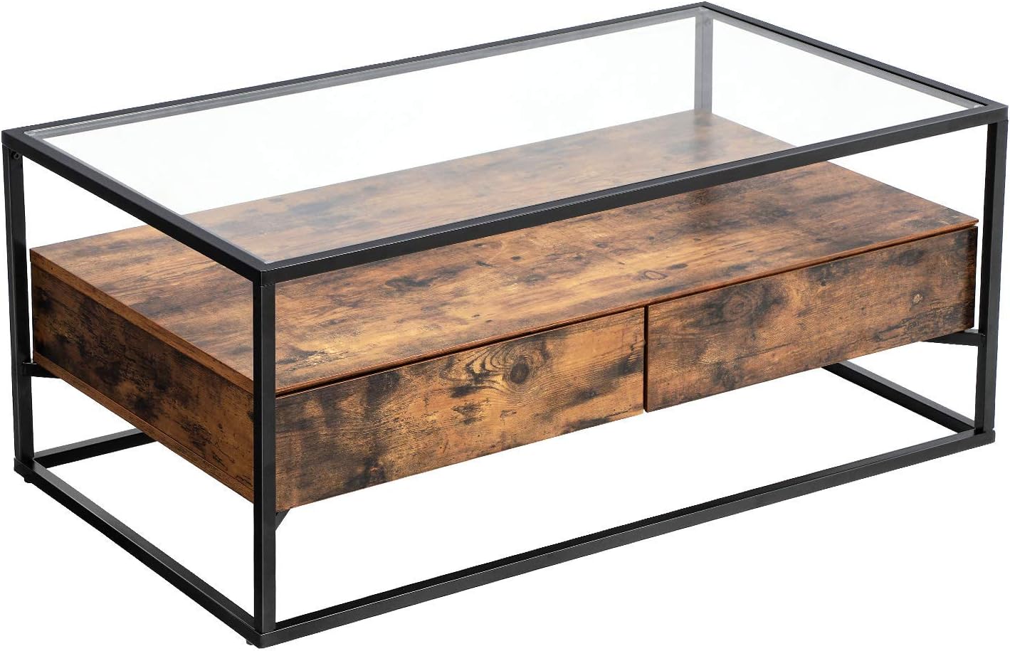 Amazon Com Vasagle Industrial Coffee Table Tempered Glass Top