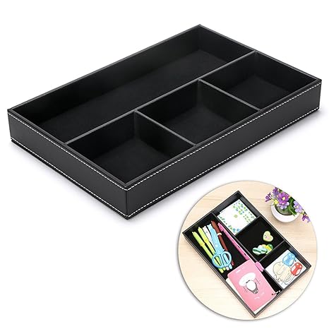 4 Slots Desk Drawer Organizer Pu Leather Drawer Storage Organizer