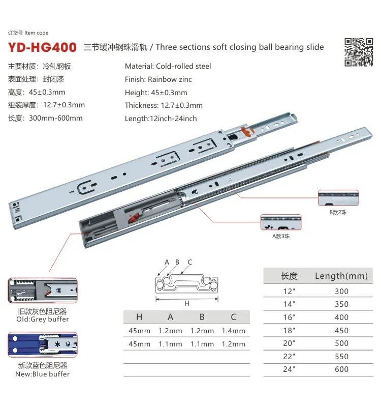 Office Desk Hardware Parts 3 Fold Slide Of 45mm Ball Bearing