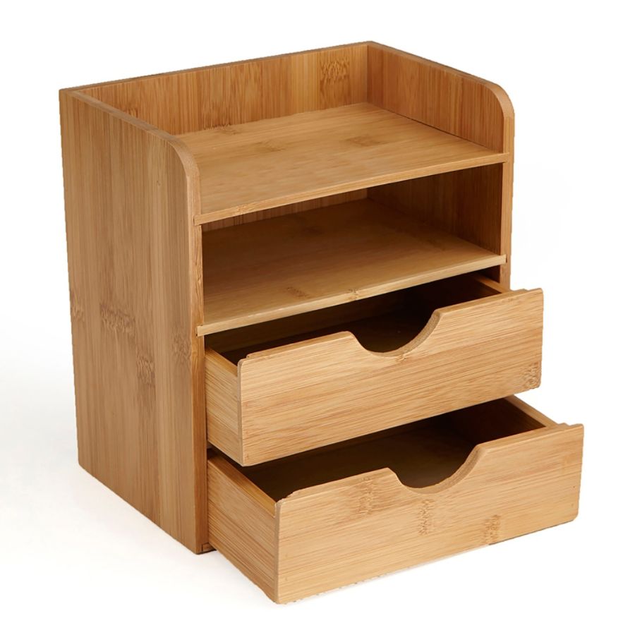 Desktop Organizer 3 Drawers Bamboo Storage Box Space Saving Desk