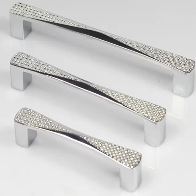 Elegant Silver Door Handles Diamond Drawer Pulls Knob Gold Kitchen
