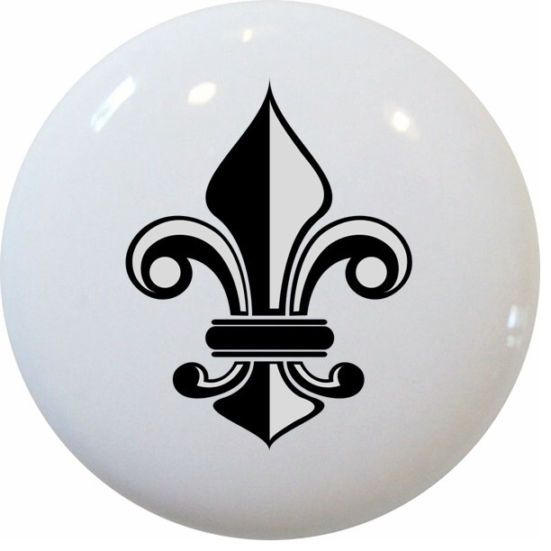 Black And White Fleur De Lis Ceramic Cabinet Drawer Knob Cabinet