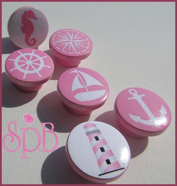 Nautical Drawer Knobs Drawer Pulls Pink Nautical Girls Room Etsy