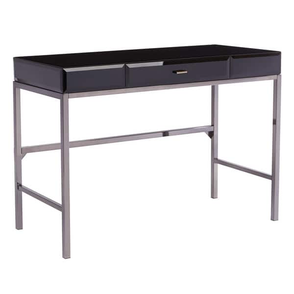 Shop Obsidian Desk With Black Glass Top And Black Nickel Metal
