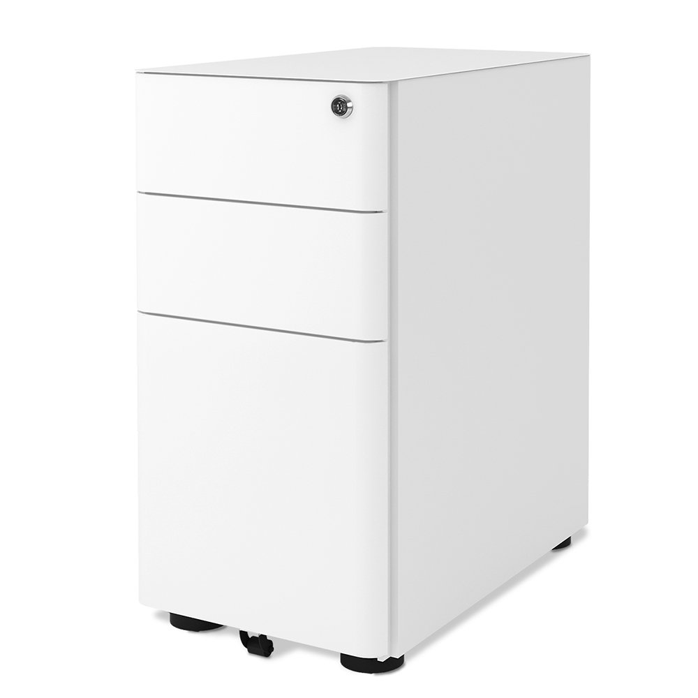 Devaise locking file cabinet 3 drawer rolling pedestal under desk fully assembled except casters white 45 out of 5 stars 50.