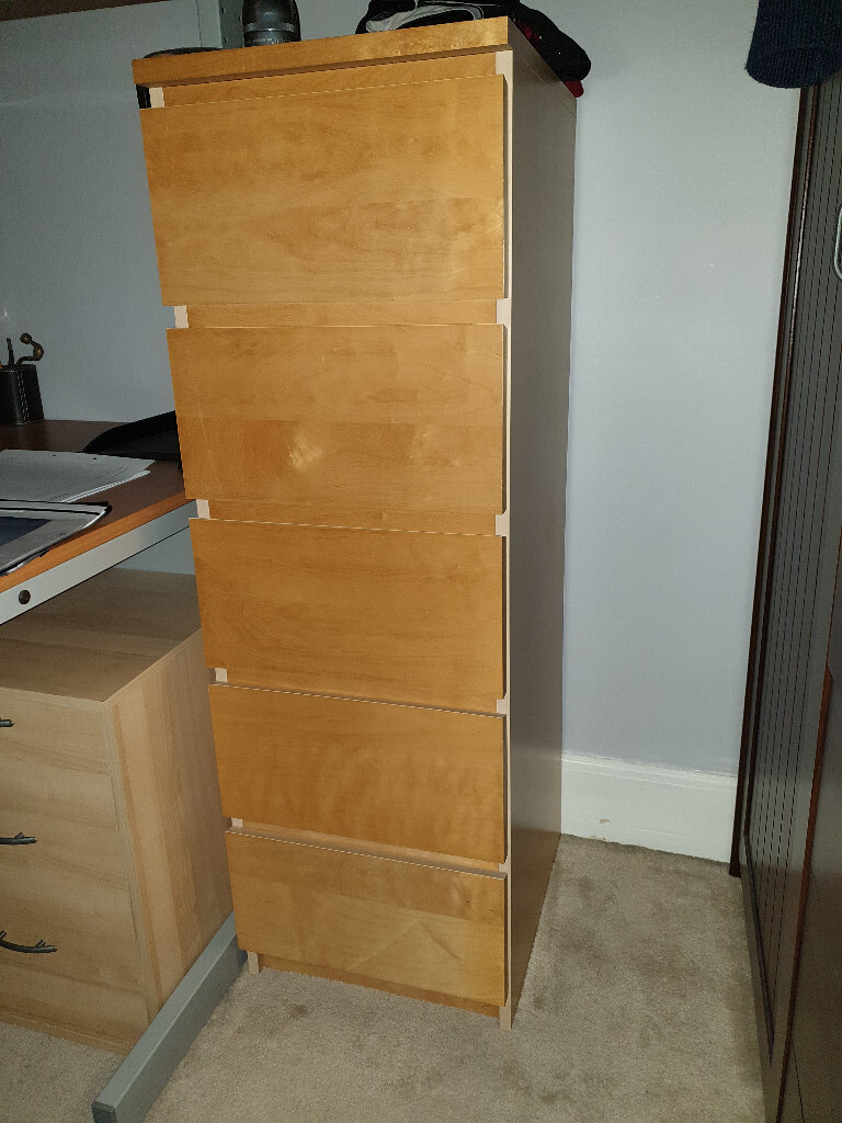 Ikea Malm Birch Veneer Chest Of 5 Drawers Used Good Condition