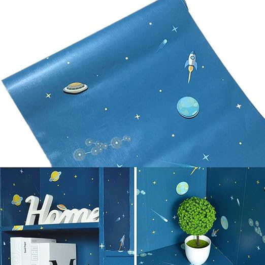 Amazon Com Upredo Blue Universe Rocket Starry Sky Adhesive Paper