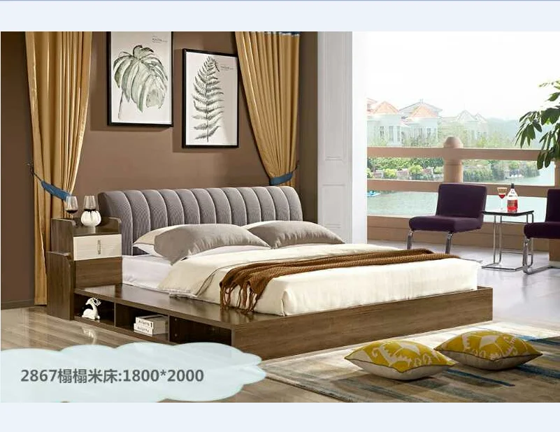 King Size Wood Flooring Platform Bed And Headboard With Built In