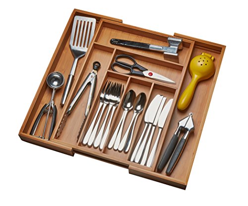 Adjustable Flatware Organizer Bamboo Kitchen Storage