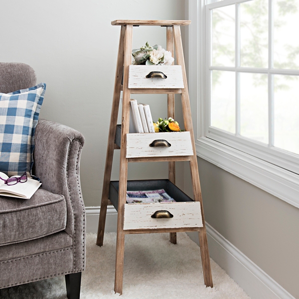 Wood Ladder Shelf With Storage Drawers Kirklands