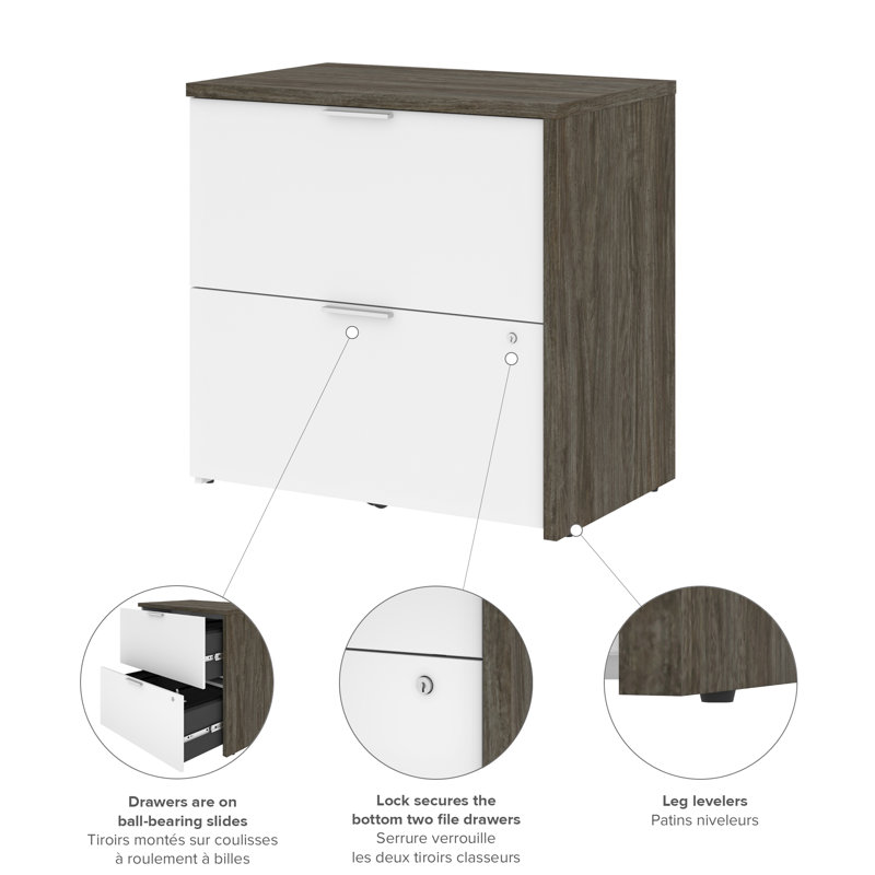 Bestar Sutton Grey Lateral File Drawers With Ball Bearing Slides