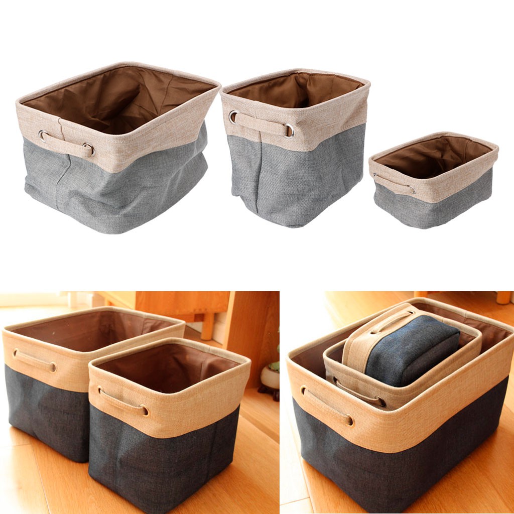 Storage Bin Basket Box Linen Fabric Organizer Drawer Container