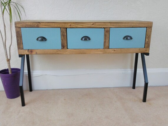 Industrial Console Table With Drawer Wooden Top Metal Legs All