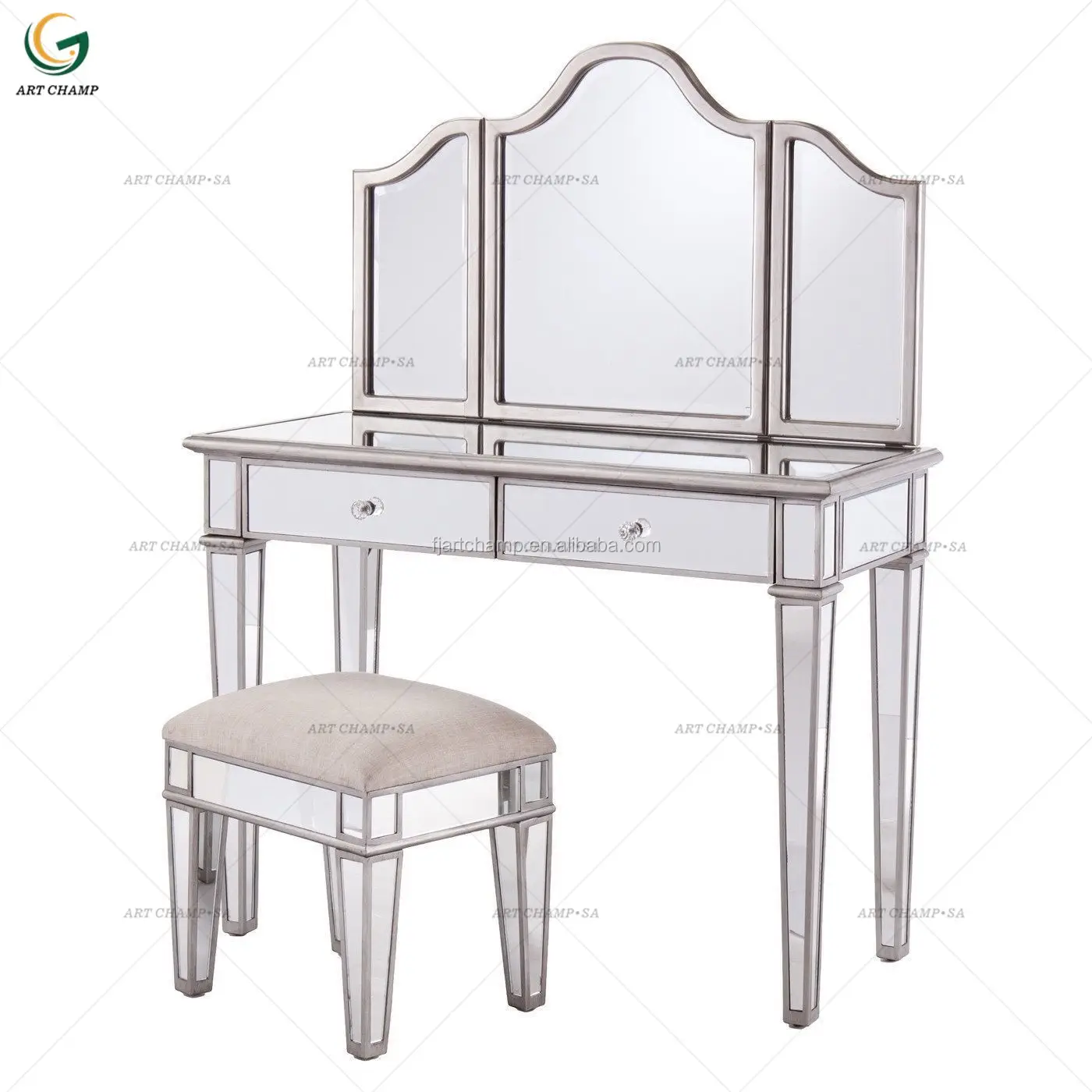 Zarina Antique Silver Mirrored Makeup Vanity Table