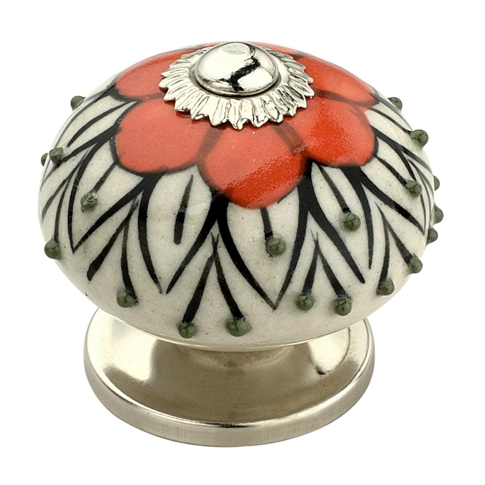 Dahlia Red And Orange Design Ceramic Drawer Knob Mcgovern Home