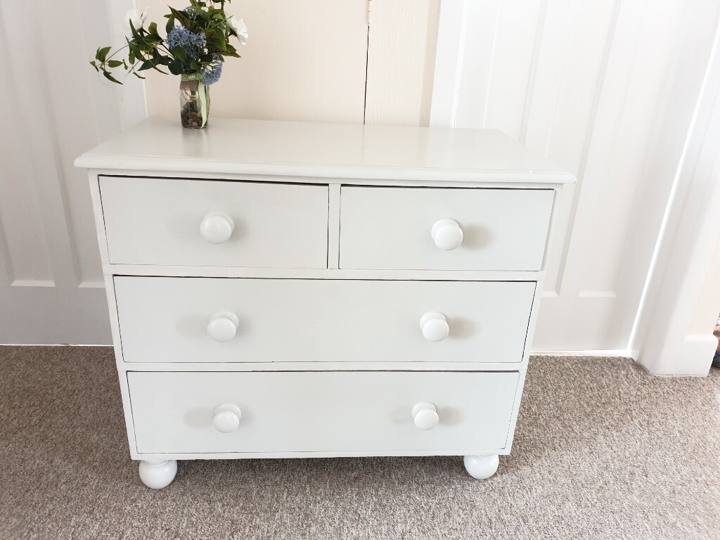 Solid Pine Chest Of Drawers Painted In Off White Chalk Paint In