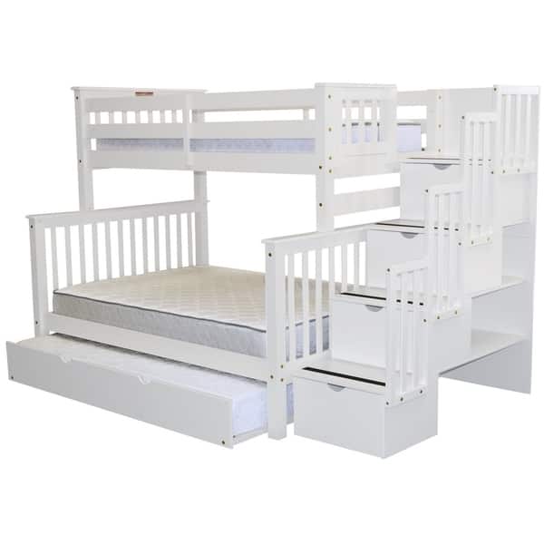 Shop Bedz King White Brazilian Pine Stairway Twin Over Full Bunk