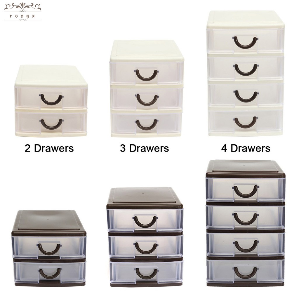 3 4 Tiers Drawer Plastic Desktop Cabinet Storage Organiser Box