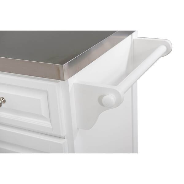 Crosley Stainle Ssteel Top Portable Kitchen Cart Island In White Finish
