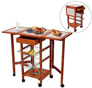 Kitchen Trolley Cart Wood Rolling Island Cart Home Restaurant