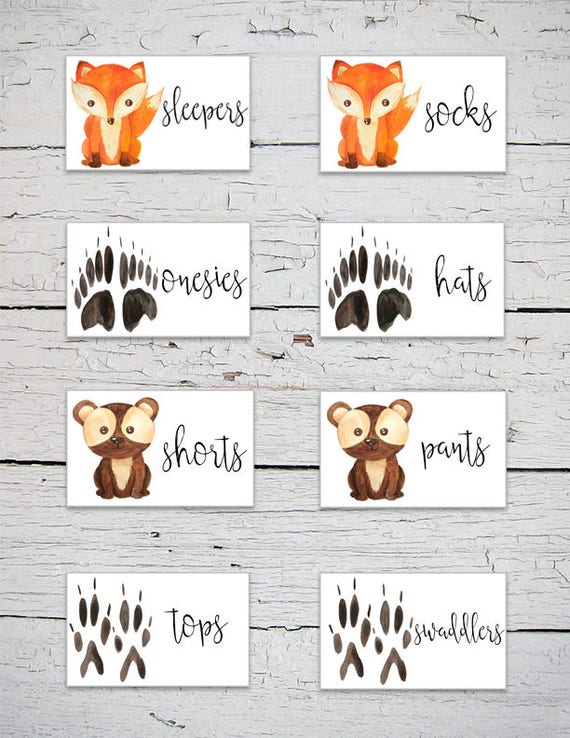 Printable Nursery Drawer Size Labels Woodland Animals Drawer Etsy