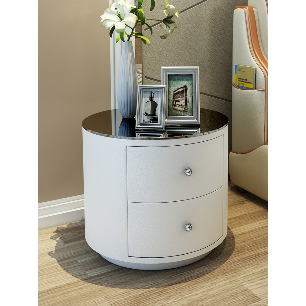 Zxpzz Bedside Locker Round Bedside Table White Drawer Creative