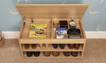Wood Shoe Bench 2 Tier Shoe Rack Ottoman Shoe Storage Organizer