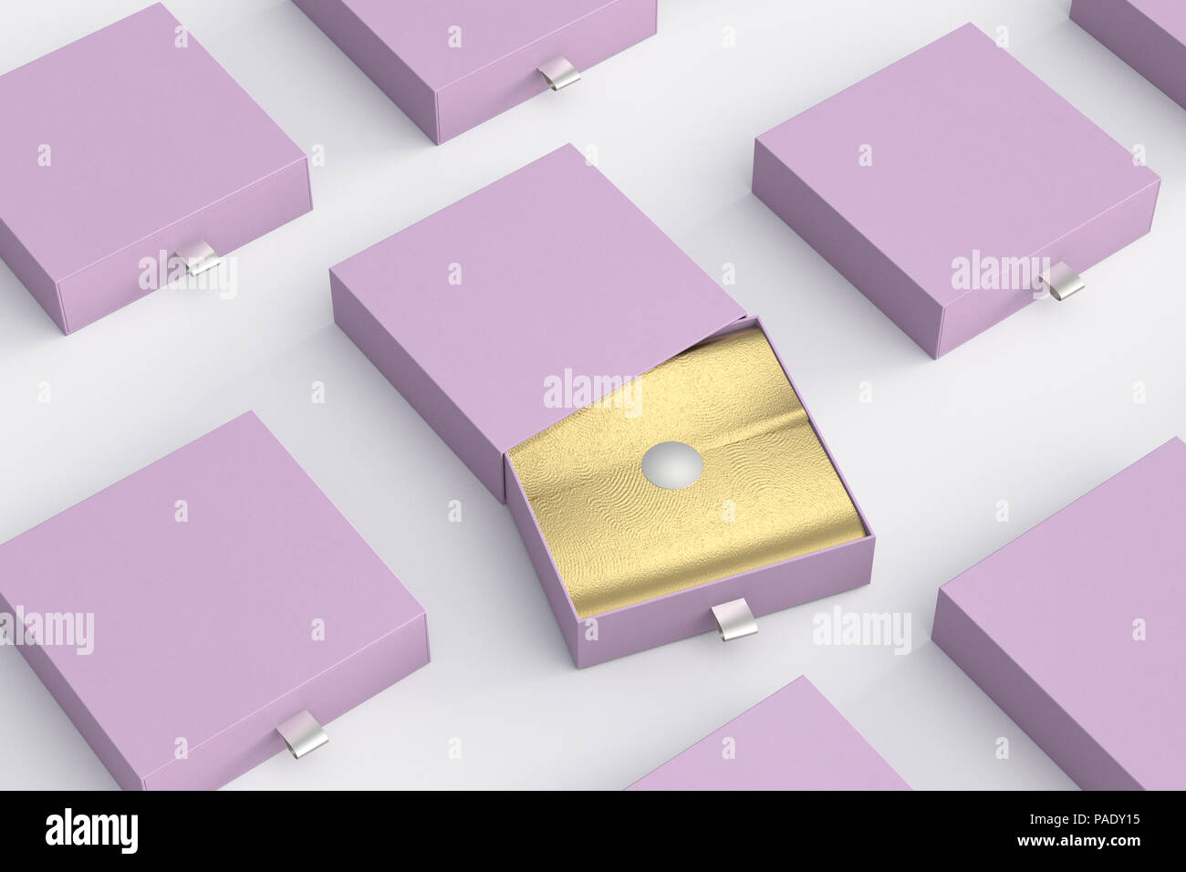 Empty Pink Opened Sliding Box And Closed Sliding Drawer Boxes
