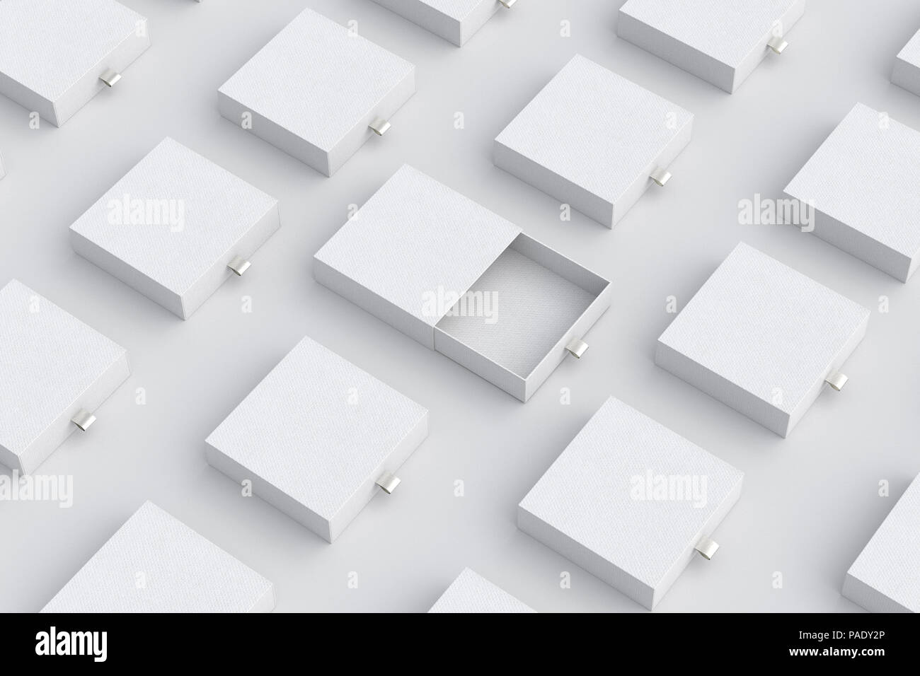 Empty White Opened Sliding Box And Closed Sliding Drawer Boxes